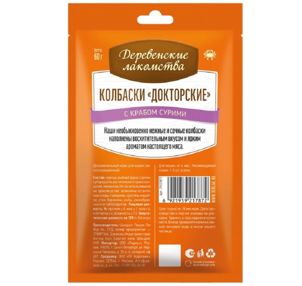 Название модели | Деревенские Лакомства: Колбаски «Докторские» с крабом сурими |