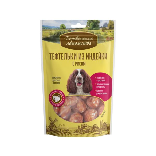 Сочные кусочки мяса индейки с рисом идеально подходят для угощения собак маленьких пород, гипоаллергенны и обладают отличным вкусом.