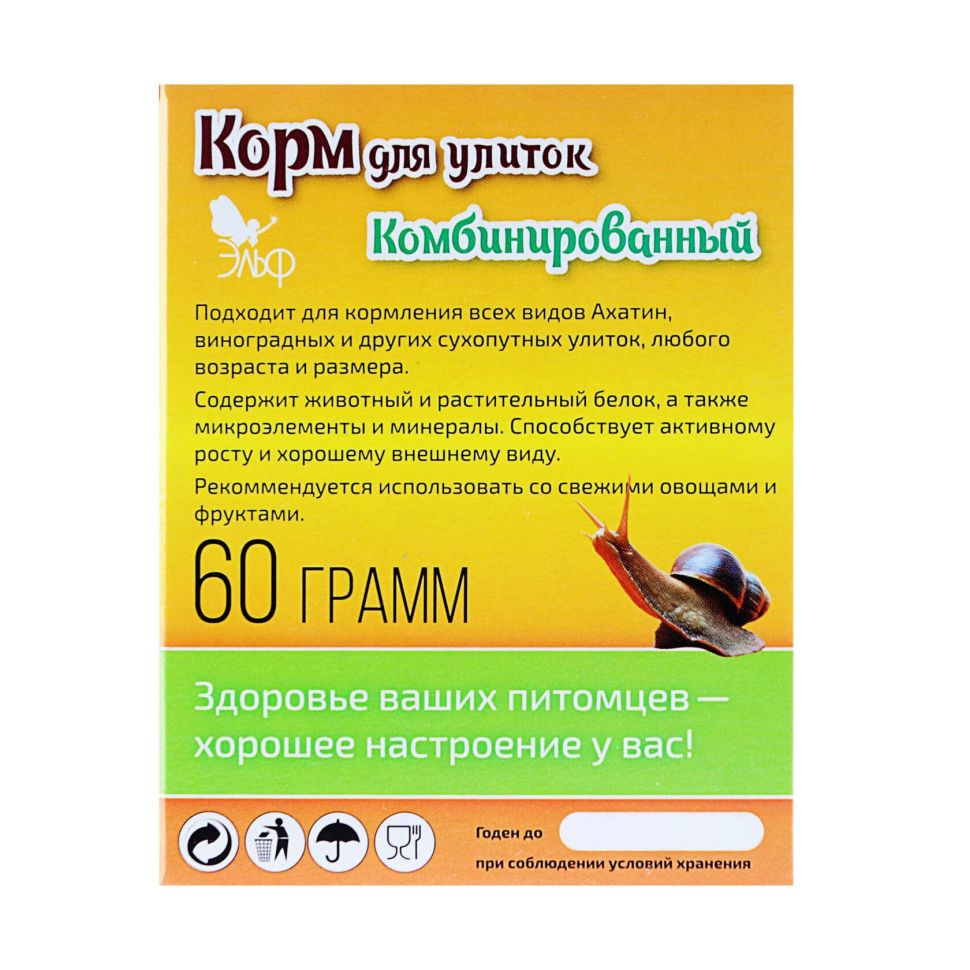 Подходит для подкормки всех видов Ахатин, виноградных и других сухопутных улиток, любого возраста и размера.