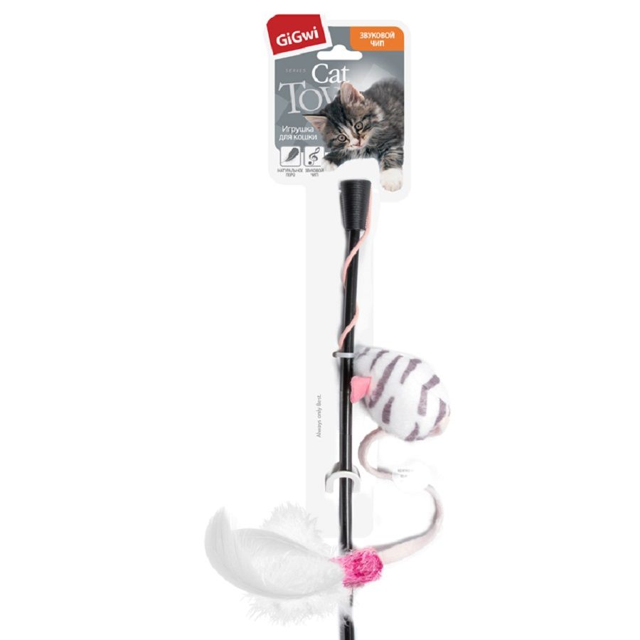 Игрушка для кошек "Дразнилка с перьями и мышкой с чипом", изготовленная из пера, текстиля и пластика, прекрасно подойдет для веселых игр вашего пушистого любимца. Играя с этой забавной дразнилкой, маленькие котята развиваются физически, а взрослые кошки и коты поддерживают свой мышечный тонус.