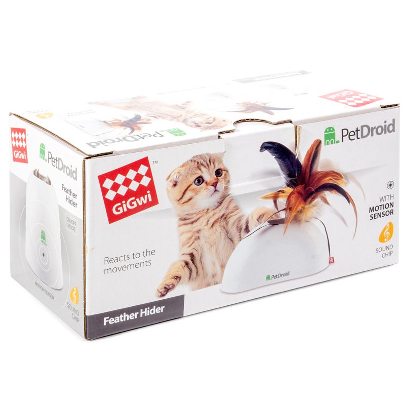 Интерактивная игрушка для кошек GiGwi "Фезер Хайдер" реагирует на поведение вашего питомца. У модели сменные насадки, датчики движения и звуковой чип. При касании лапами игрушка издает звуки, похожие на чириканье птиц. Хвостик из натуральных перьев выскакивает из корпуса игрушки, что очень забавляет питомца. Игрушка активируется автоматически при подходе к ней животного благодаря встроенным датчикам движения. Возможность использования в вертикальном и горизонтальном положении. В комплекте крепеж для установки в вертикальном положении и 2 сменные насадки с перьями розового и коричневого цвета. Игрушка работает от 2 батареек типа АА (не входят в комплект).