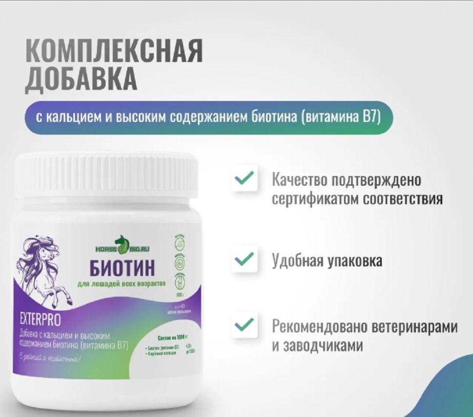 Стабилизирует обменные процессы организма, способствует укреплению и быстрому росту копытного рога, а также устойчивости копытного рога к воздействию внешних факторов.
