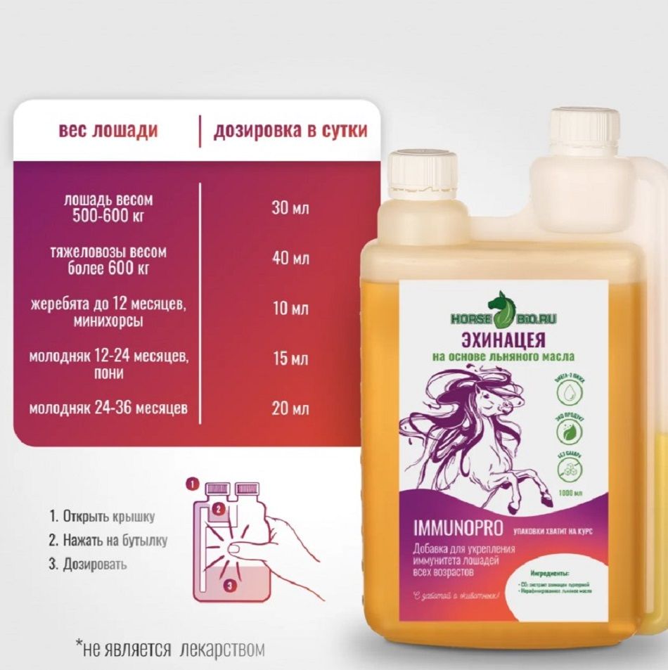 Название модели | Эликсир ЭХИНАЦЕЯ ImmunoPro на основе льняного масла для лошадей |