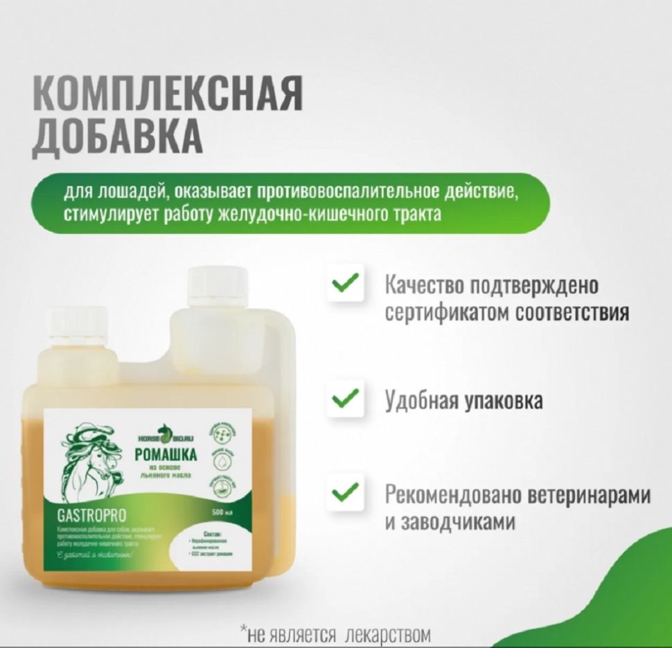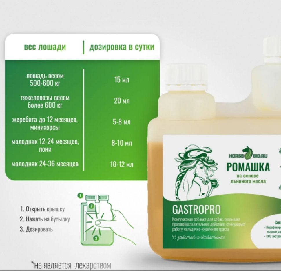 Название модели | Эликсир РОМАШКА GastroPro на основе льняного масла для лошадей |