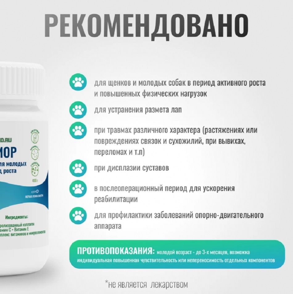 Важно: подкорму рекомендуется давать собакам начиная с 3-х месяцев в период активного роста для поддержания сухожильно-связочного аппарата.