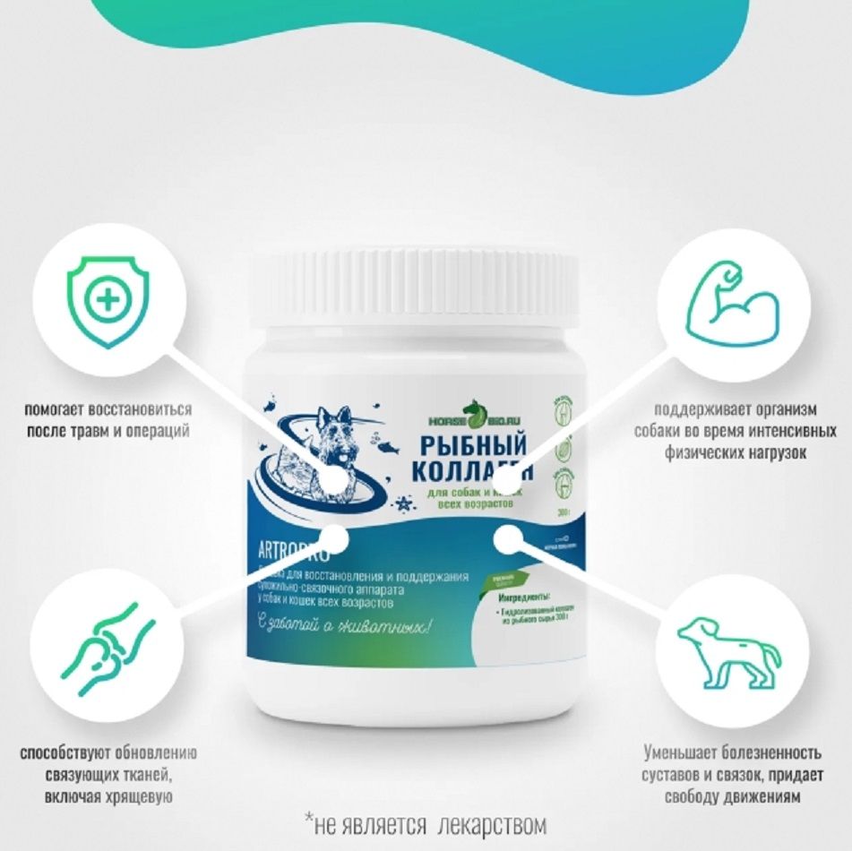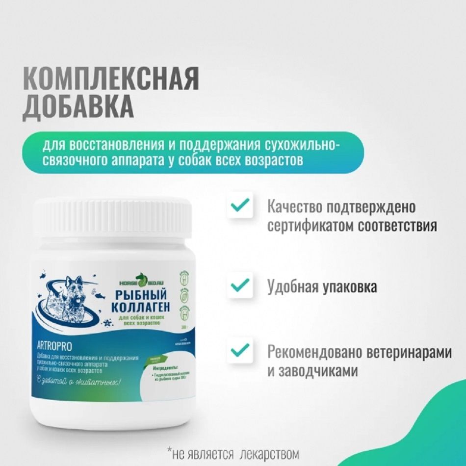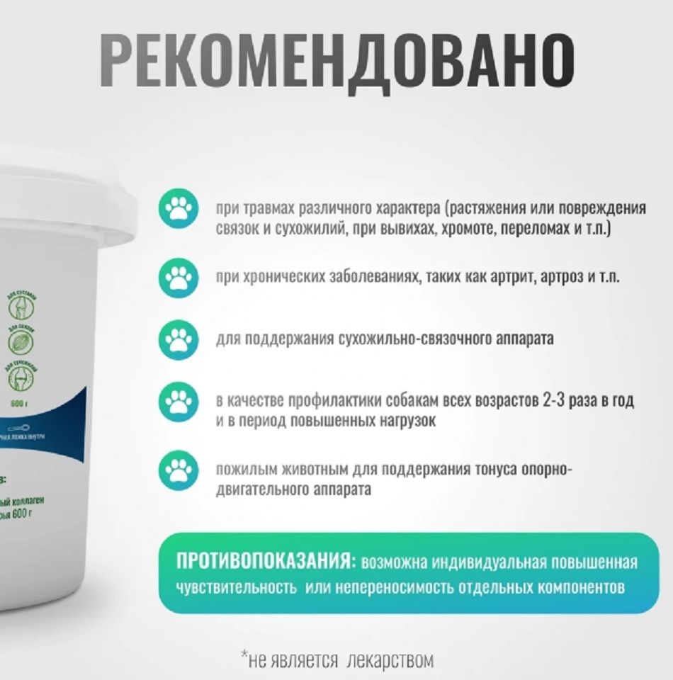 Действие: помогает восстановиться после травм и операций сухожильно-связочного аппарата, поддерживает организм собаки во время интенсивных физических нагрузок.