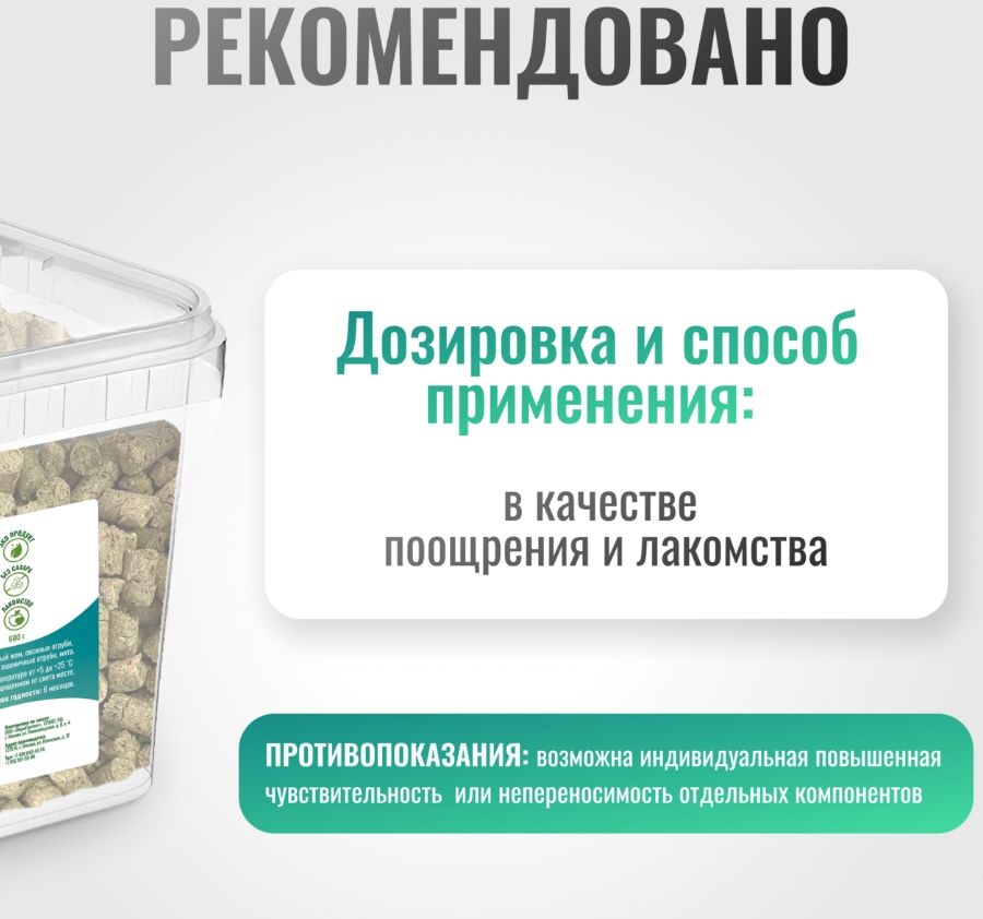 Дозировка и способ применения: в качестве поощрения и лакомства.
