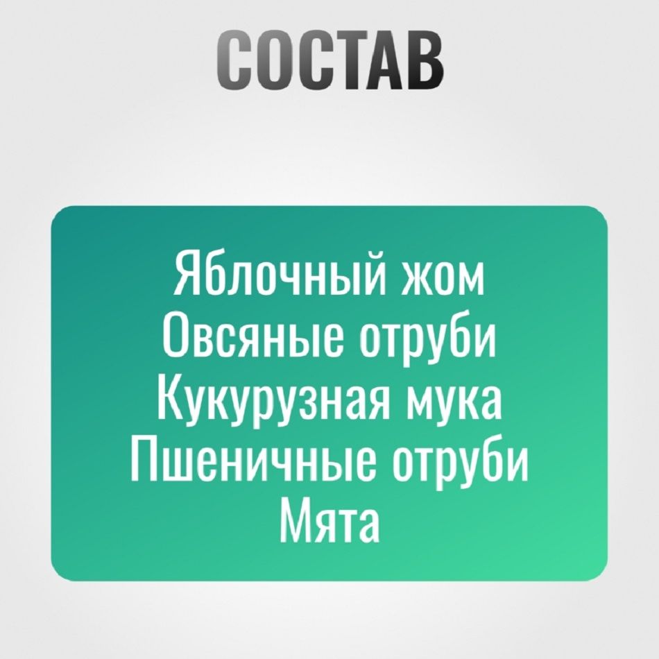 Состав | Яблочный жом Овсяные отруби Кукурузная мука Пшеничные отруби Мята |