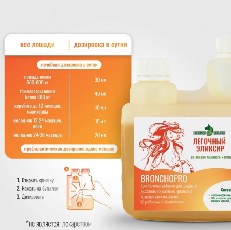 Название модели | ЛЁГОЧНЫЙ BronchoPro на основе льняного масла для лошадей 500 |