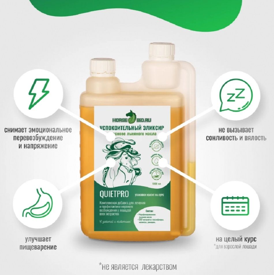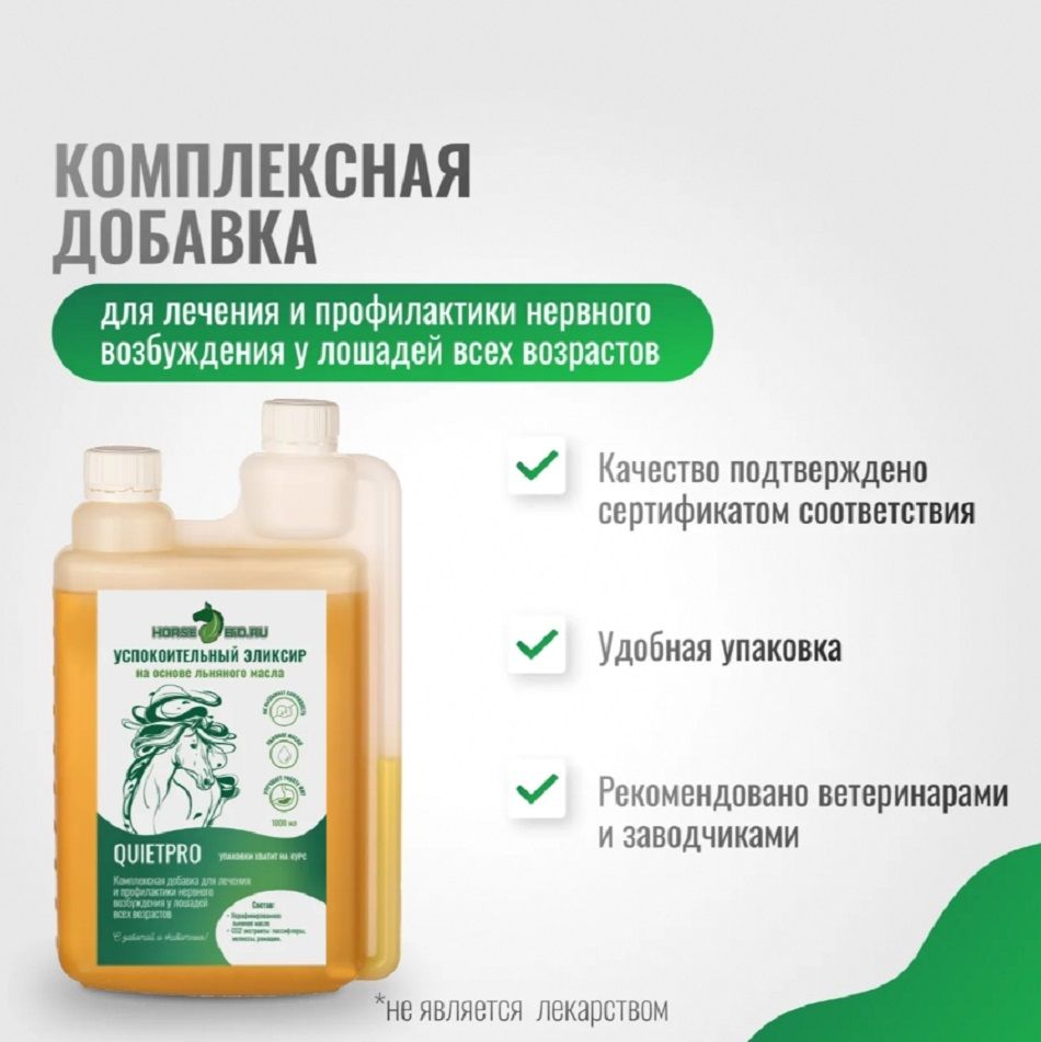 Название модели | УСПОКОИТЕЛЬНЫЙ QuietPro на основе льняного масла для лошадей 1 л |