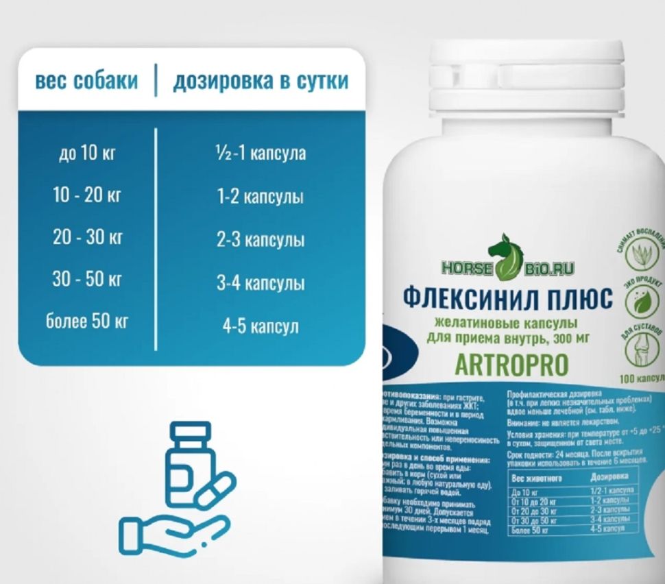 Рекомендации, дозировка | До 10 кг - 1/2-1 капсула От 10 до 20 кг - 1-2 капсулы |