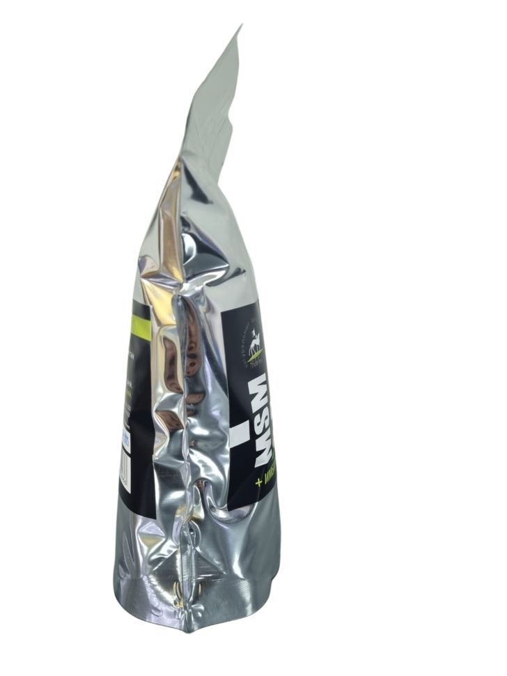 MSM – входит в состав многих эндогенных белков (в том числе белков соединительной ткани коллагена, эластина, кератина), гормонов и других метаболических активных соединений. MSM способствует более быстрому восстановлению суставов и мышц после физической нагрузки, обладает противовоспалительными, антиоксидантными, противоалергенными свойствами. Метилсульфонилметан участвует в формировании соединительной ткани, биосинтезе коллагена, способствующего эластичности кожи и укреплению мышц, способствует заживлению ран, оказывает положительный эффект на состояние кожи, копыт и рост волос.