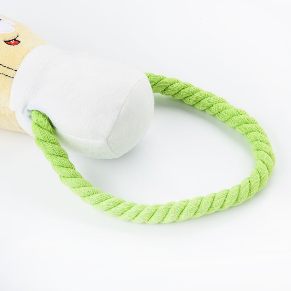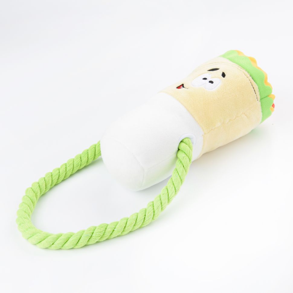 Игрушка Mr.Kranch для собак "Шаурма" плюшевая с канатиком и пищалкой. Уникальное сочетание высокопрочных гипоаллергенных материалов и стильного дизайна. Для привлечения большего интереса питомца, спрячьте любимые лакомства или корм в складки игрушки. 100% натуральный хлопковый канат способствует удалению мягкого зубного налета. Размер: 21 см