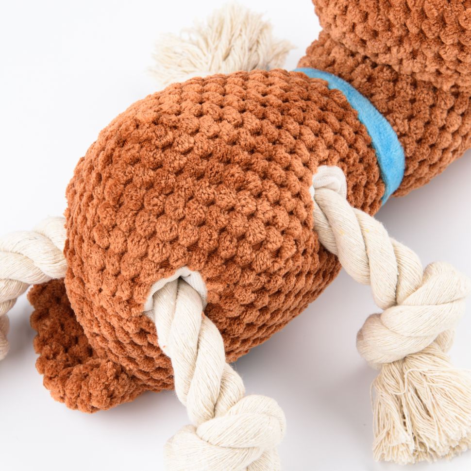 Игрушка Mr.Kranch для собак "Собачка" плюшевая с канатиками и пищалкой. Уникальное сочетание высокопрочных гипоаллергенных материалов и стильного дизайна. Для привлечения большего интереса питомца, в переплетение каната можно спрятать любимые лакомства или корм. Игрушка предназначена для совместных игр с хозяином как в помещении, так и на улице. Натуральный хлопковый канат способствует удалению мягкого зубного налета. Размер: 22 см