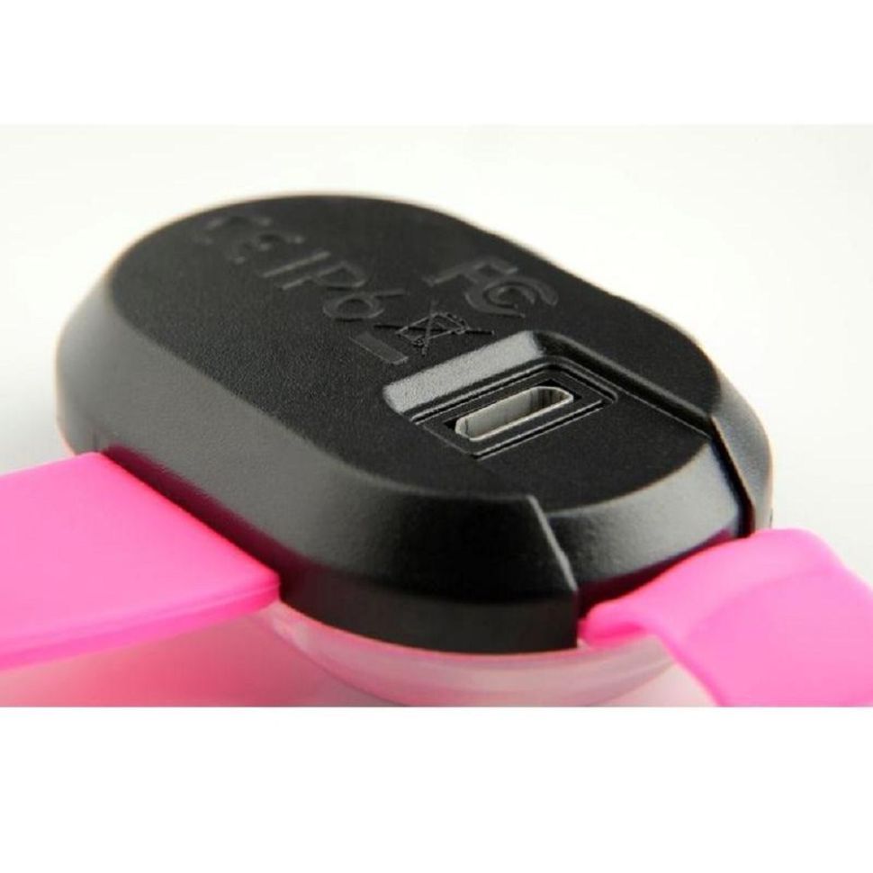 Динамичный силиконовый ремешок обеспечивает надежное крепление к ошейнику, поводку и шлейке шириной до 2,5 см.