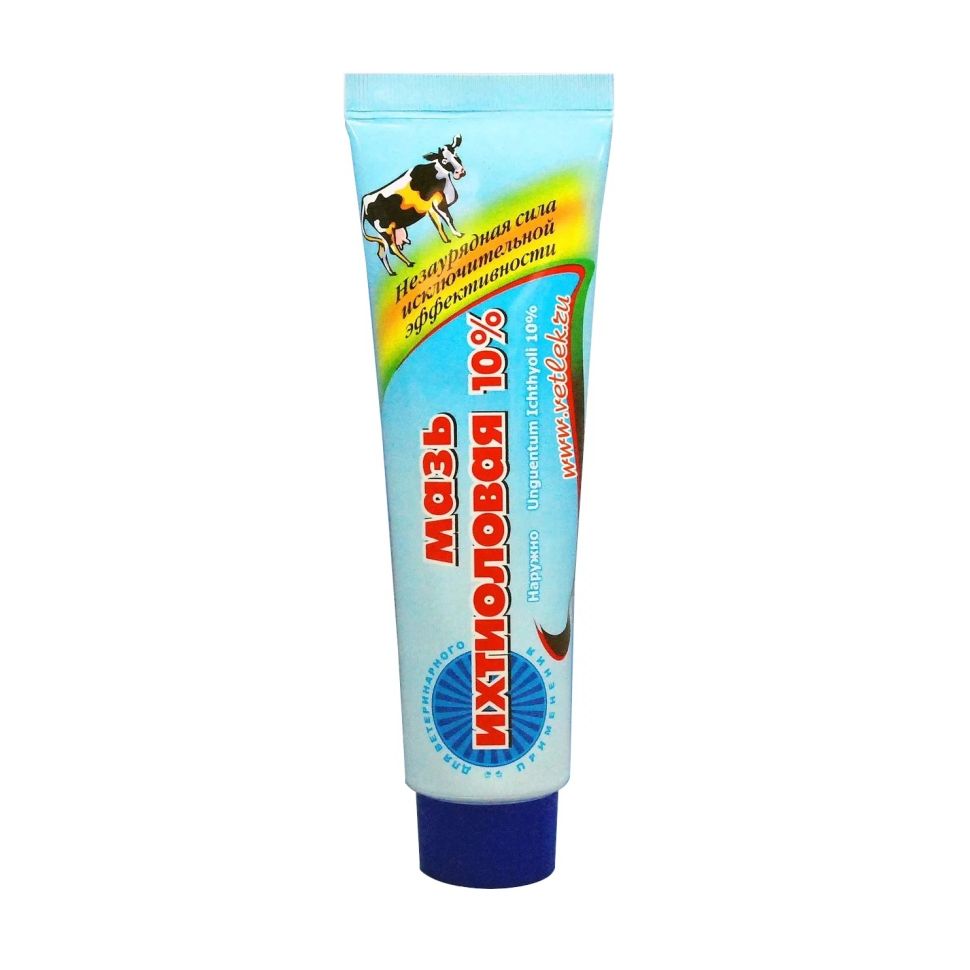 Мазь ихтиоловая 10% – лекарственный препарат в форме мази, содержащий в 100 г в качестве действующего вещества 10 г ихтиола, а в качестве вспомогательного вещества 90 г вазелина медицинского или ветеринарного.