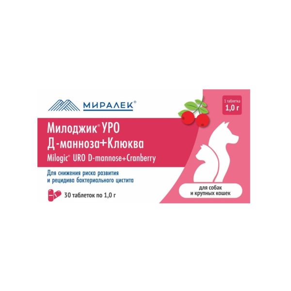 Назначение: «Функциональное лакомство Милоджик Уро Д-манноза+клюква» помогает предотвратить развитие бактериального цистита и улучшить состояние мочевого пузыря. Благодаря воздействию Д-маннозы бактерии, вызывающие цистит, теряют подвижность и патогенность. При этом полезная микрофлора не страдает. Более того, Милоджик УРО с Д-маннозой способствует росту полезных молочнокислых бактерий. Милоджик УРО безопасно для пациентов с сахарным диабетом, так как не повышает уровень сахара в крови. Милоджик УРО с Д-маннозой можно назначать при рецидивирующем и спорадическом цистите, при бессимптомной бактурии. Милоджик УРО с Д-маннозой и клюквой будет полезен в составе комплексной терапии для пациентов со струвитным струвитным уролитиазом, так как поможет добиться оптимального рН мочи (менее 6,0).