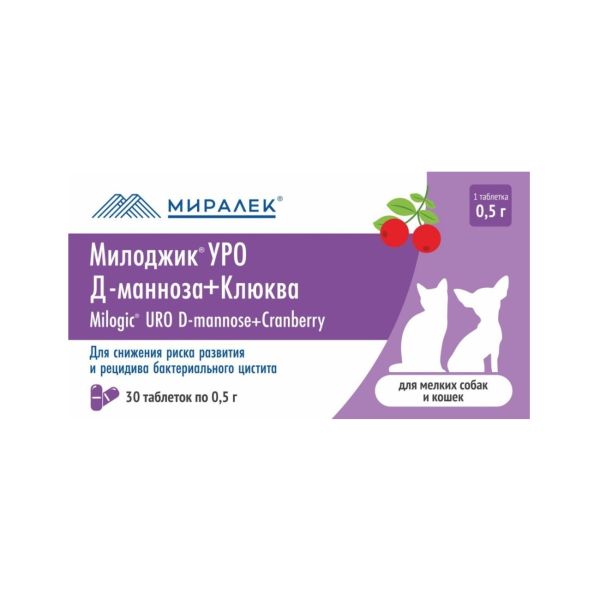 Порядок применения и дозировка:«Функциональное лакомство Милоджик Уро Д-манноза + клюква» для кошек и собак рекомендуется давать 1 раз в сутки из расчета 1 таблетка на каждые 10 кг веса животного. Лакомство можно давать как вместе с ежедневным рационом, так и отдельно. Предназначено для систематического употребления при условии отсутствия побочных реакций у животного.