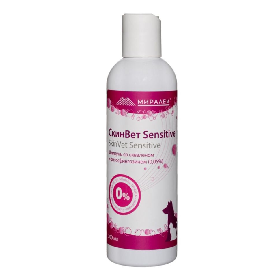 Назначение: «Шампунь Скинвет Sensitive» со скваленом и фитосфингозином смягчает кожу и шерсть животного, способствуя удержанию влаги и восстановлению липидного барьера в коже. Также компоненты шампуня позволяют устранить повреждения и ломкость волос и укрепить волосяные луковицы.