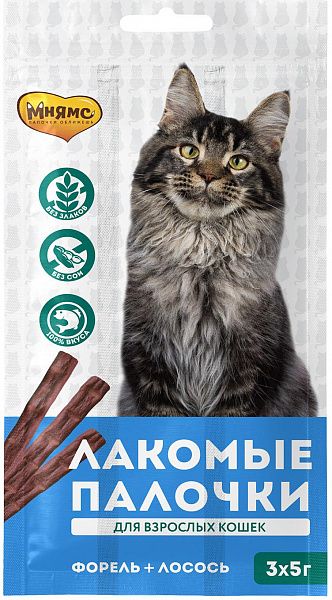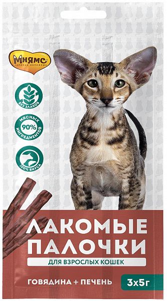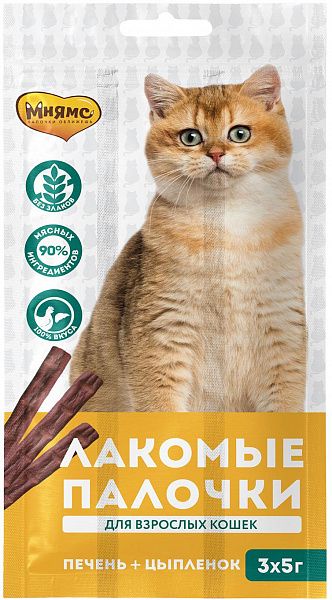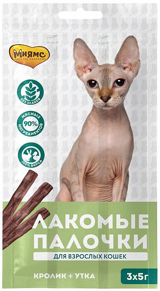 Лакомые палочки для кошек индейкой и ягненком «Мнямс» – вкусное и здоровое угощение, от которого не откажется даже самая привередливая и избалованная кошка.