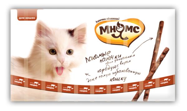 Лакомые палочки для кошек с говядиной и печенью «Мнямс» – вкусное и здоровое угощение, от которого не откажется даже самая привередливая и избалованная кошка.