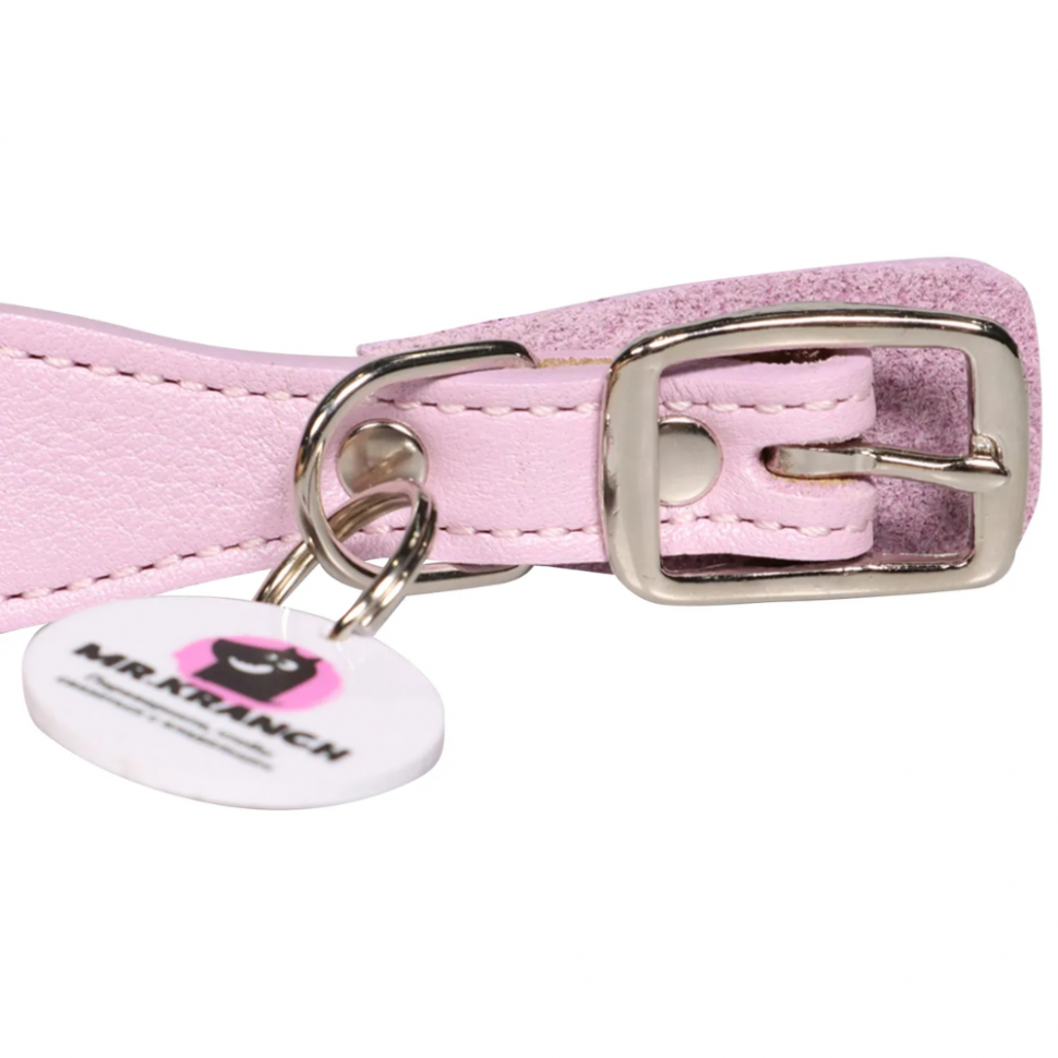 Ошейник для собак от российского бренда Mr.Kranch - представляет собой изделие, которое изготовлено из натуральной кожи, имеет мягкий розовый оттенок и оснащено QR-кодом, с помощью которого можно связаться с владельцем в случае утери домашнего питомца. Данный ошейник подходит для маленьких и средних пород собак, так как его диапазон размеров обхвата шеи составляет от 38 до 45 см.