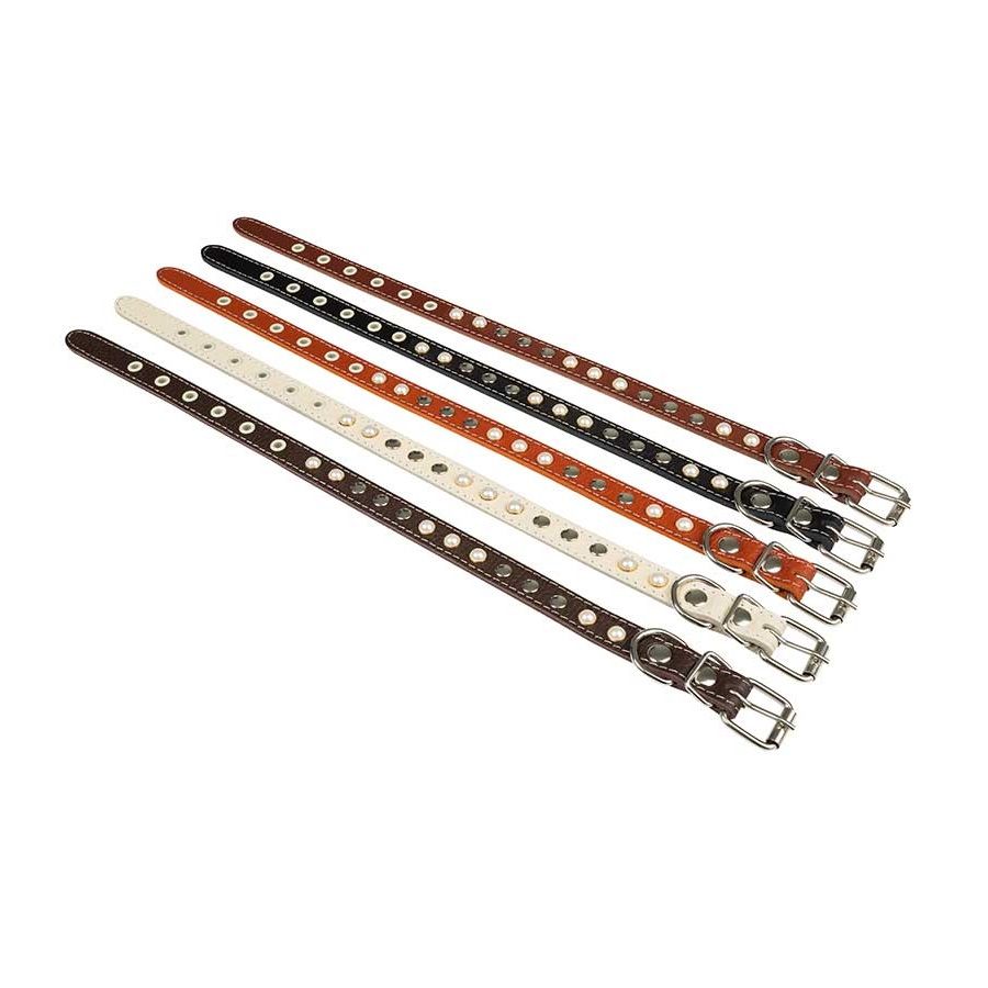 Ошейник для собак мелких и средних пород. Изготовлен из натуральной кожи, с подкладом, украшенный металлической фурнитурой.