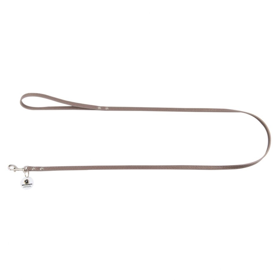 Удобный и надежный поводок для собак. Материал - натуральная кожа бежевого цвета. Швы крепкие и ровные с качественно заделанными концами.