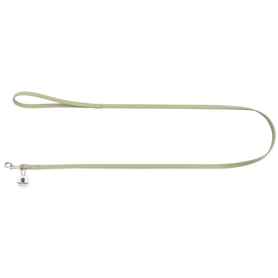 Удобный и надежный поводок для собак. Материал - натуральная кожа зеленого цвета. Швы крепкие и ровные с качественно заделанными концами.