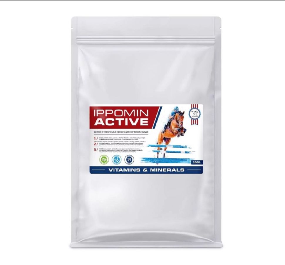 ИППОМИН АКТИВ разработан в соответствии с рекомендациям NRC (National Research Council) и BASF (Animal Nutrition) в отношении потребностей спортивных лошадей. Состав Иппомин Актив содержит 29 компонента, сбалансированных с учетом российских рационов.