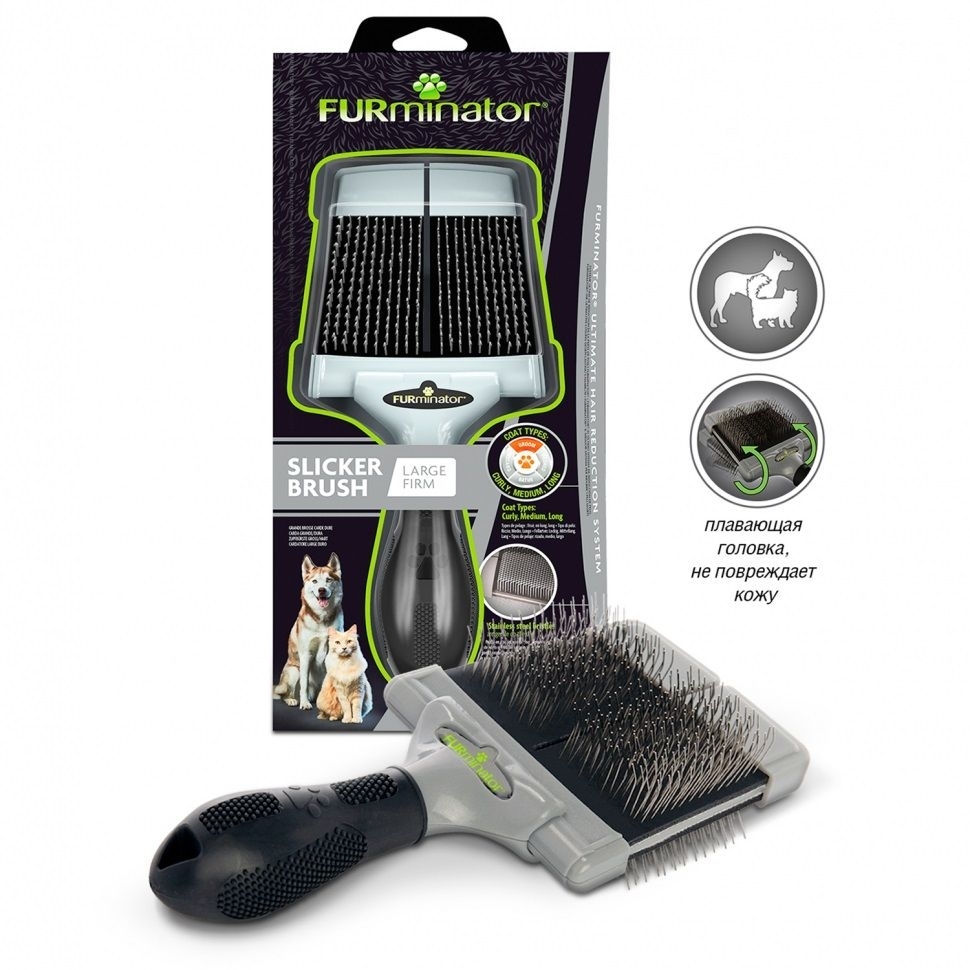 Пуходерка от американского бренда FURminator - представляет собой удобный инструмент с жёсткой щетиной из нержавеющей стали. Разработана специально для котов и собак со средней и длинной вьющейся шерстью. Устройство с двойной гибкой головкой повторяет естественные контуры головы и тела домашнего питомца. Удобная рукоятка обеспечивает комфортное и беззаботное использование пуходерки.