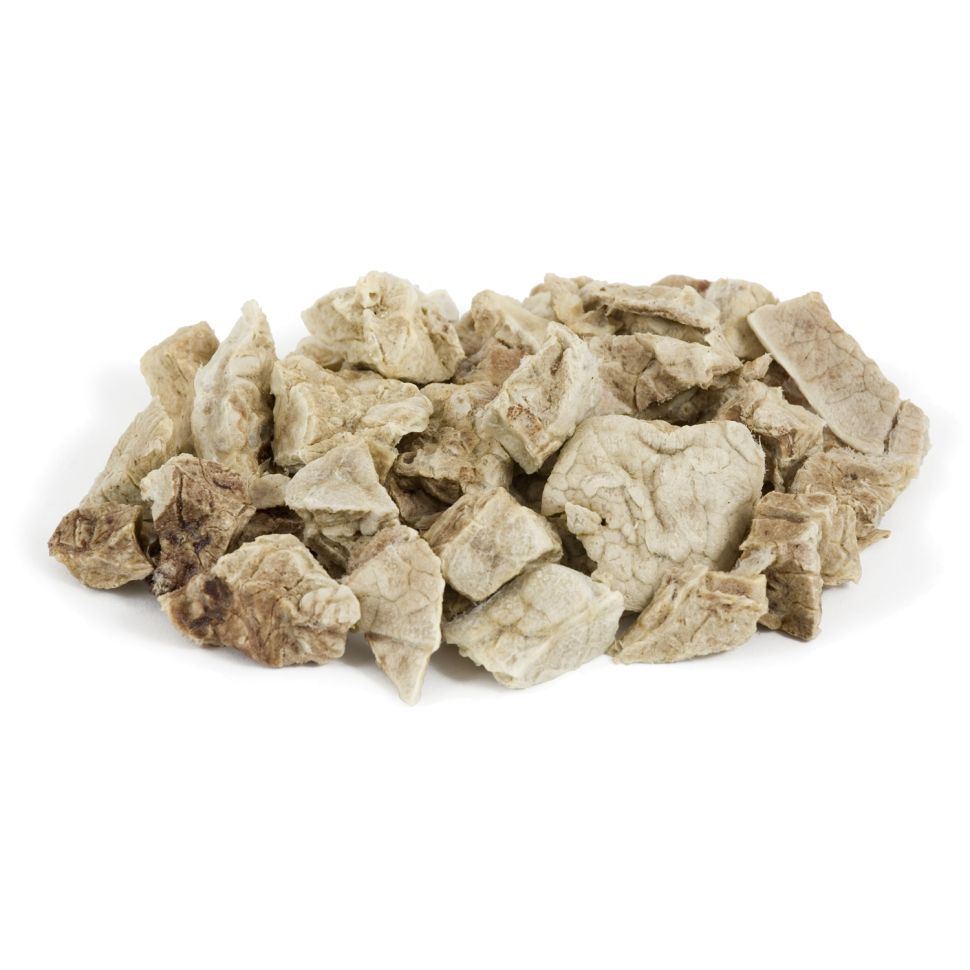 Кусочки высушенного говяжьего легкого. Высокое содержание микроэлементов и соединительной ткани дополняет удовольствие собаки от нежного лакомства. Легкие очень вкусны, малокалорийны и замечательно усваиваются организмом. Легкие содержат практически такой же набор витаминов, как и мясо, но зато гораздо менее жирные. Оказывают положительное воздействие на состояние кожи, шерсти и общий обмен веществ. Кусочки очень удобно использовать в качестве поощрения при дрессуре, и просто на прогулках. Для собак всех пород и возрастов. Особенно рекомендуется для собак с неполной зубной формулой и возрастными изменениями зубочелюстного аппарата. Благодаря вкусовым качествам и воздушной структуре является одним из самых любимых лакомств для наших четвероногих друзей.