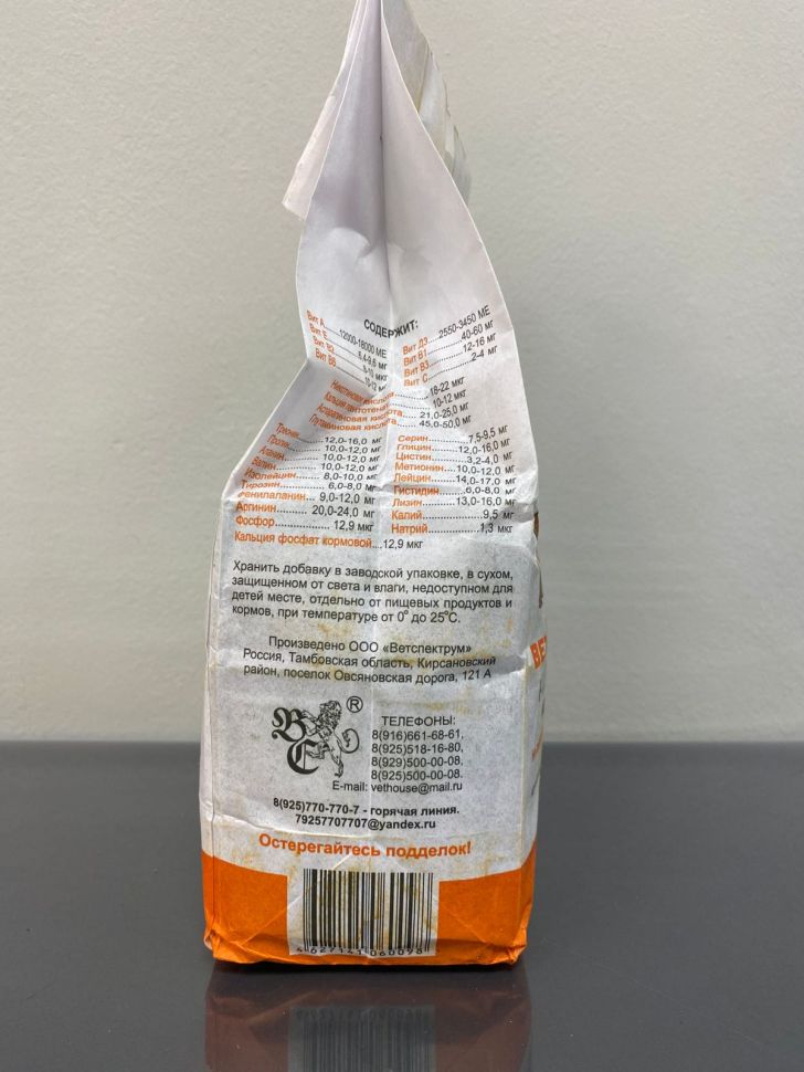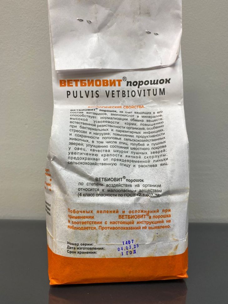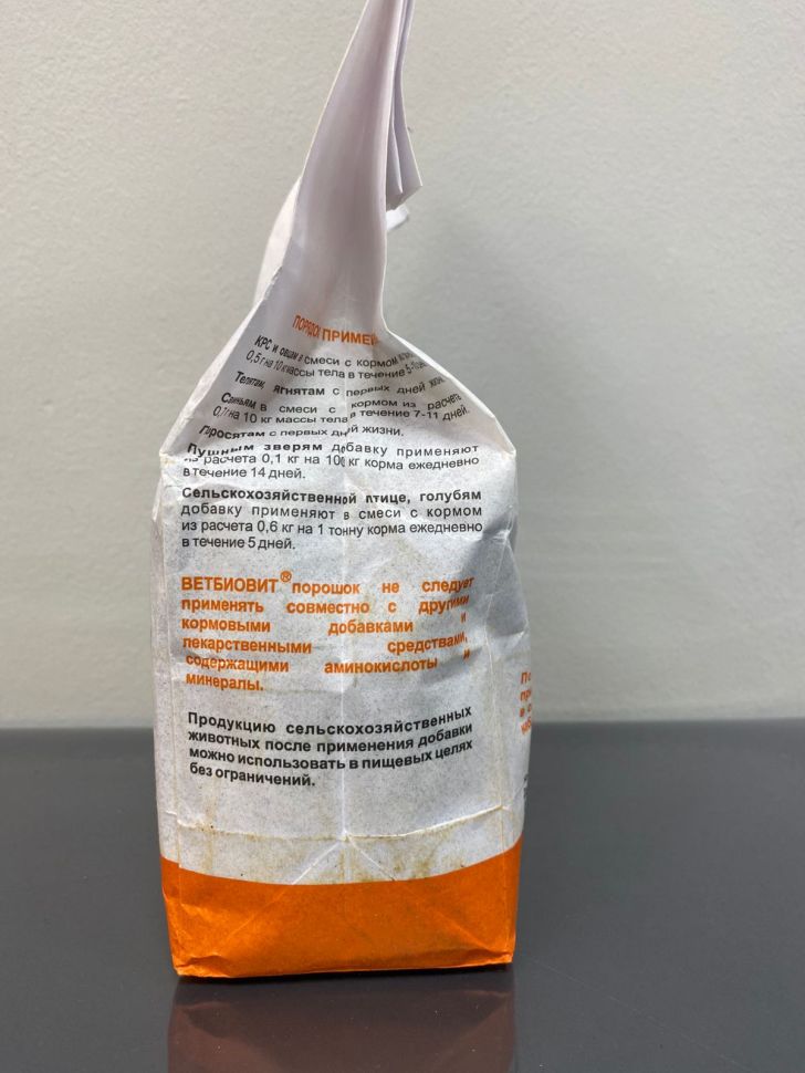 Ветбиовит выпускается в бумажных пакетах по 250 г, 500 г, 1000 г и 25 кг.