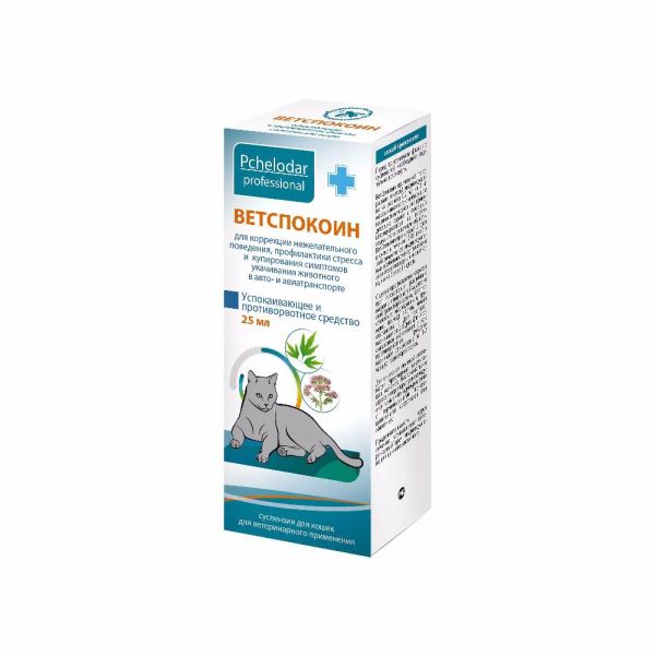 Лекарственный препарат, содержащий в 1 таблетке действующие вещества: фенибут – 40 мг, экстракт валерианы – 10 мг, экстракт пустырника – 8 мг, прометазина гидрохлорид – 5 мг, экстракт пчелиного маточного молочка – 1 мг и вспомогательные компоненты. По внешнему виду ВетСпокоин представляет собой таблетки округлой формы белого цвета. Выпускают препарат расфасованным по 15 таблеток в полимерные флаконы, герметично укупоренные навинчивающимися крышками с контролем первого вскрытия, упакованные в картонные коробки в комплекте с инструкцией по применению.