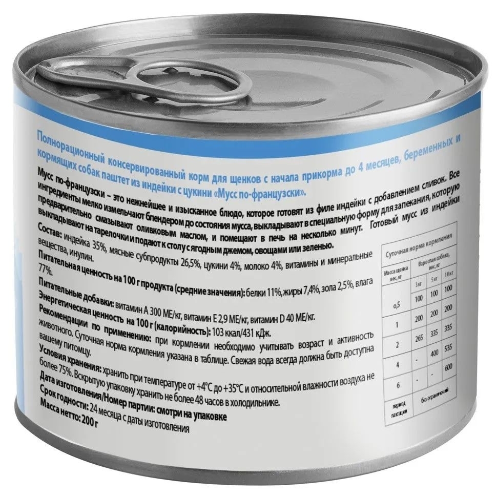 - подходит для щенков всех пород с момента прикорма и до 4 месяцев, беременных и кормящих собак