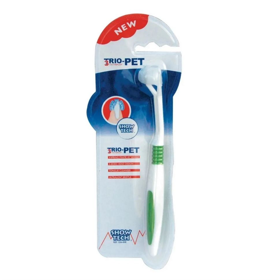 Трехсторонняя зубная щетка для собак, изготовлена с учетом анатомического строения ротовой полости собаки, она эффективно очищает зубы собаки от желтого налета и зубного камня.